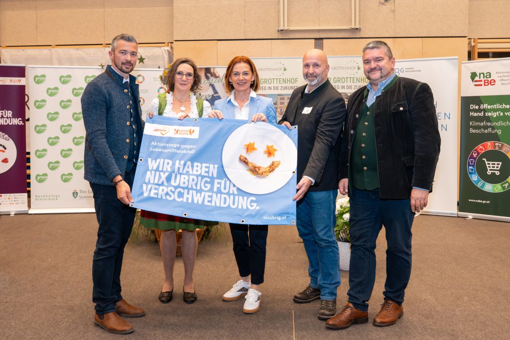 Das Nachmittagsprogramm legte den Schwerpunkt auf das Thema Lebensmittelabfallvermeidung im Rahmen des Großküchen-Gipfels des Landes Steiermark. Hier wurde, unterlegt durch Erfolgsbeispiele aus der Praxis die Zielsetzung verfolgt, die Möglichkeiten der Kostenersparnis im Zusammenhang mit einer Reduktion des Lebensmittelabfalls in Betrieben darzustellen. Die rund hundert Teilnehmenden am Großküchen-Gipfel, der durch United Against Waste organisiert wurde, konnten hier wertvolle Informationen und Tipps für die Umsetzung in ihren Großküchen mitnehmen. Als Höhepunkt und Abschluss des Großküchen-Gipfels wurden erfolgreiche Großküchen für ihre Leistungen in der Einsparung von vermeidbaren Lebensmittelabfällen ausgezeichnet.