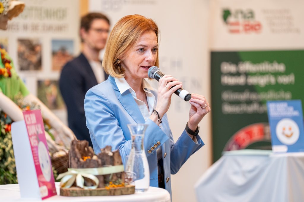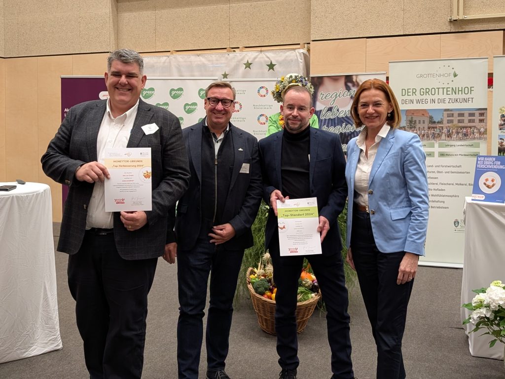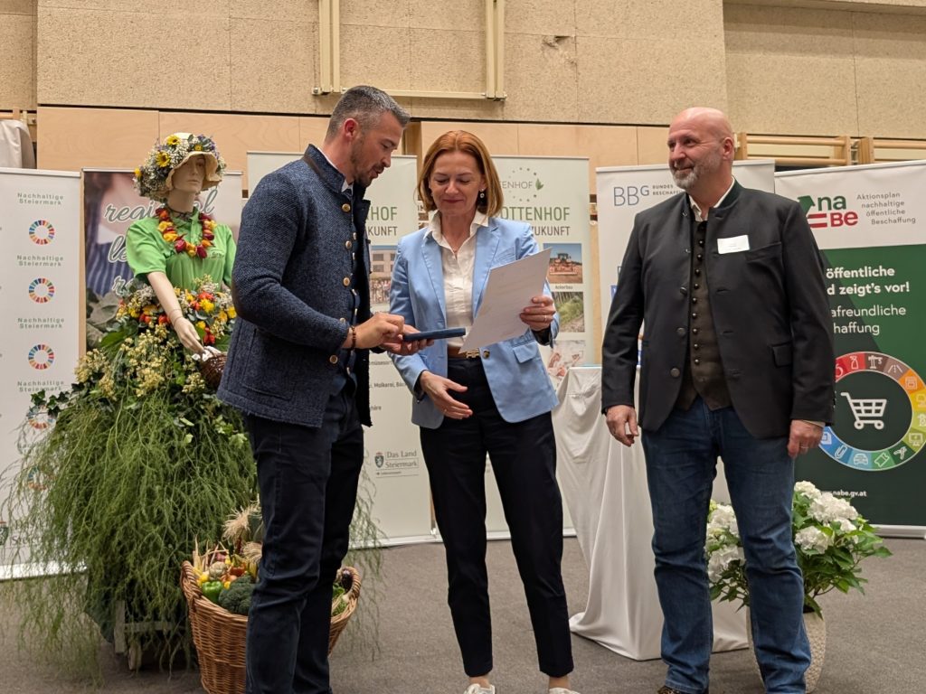 Eröffnungsworte hielten die Landesrätin für Land- und Forstwirtschaft Simone Schmiedtbauer, Maria Leitner, stellvertretende Direktorin der LFS Grottenhof und Gerhard Zotter, Geschäftsführer der Bundesbeschaffung GmbH. Bundesminister Norbert Totschnig war mit einer Videogrußbotschaft vertreten.
